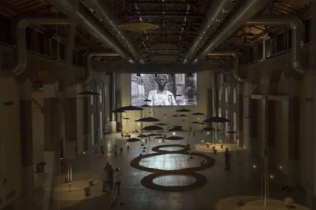 “Sì, sono partito dalla voce di mia nonna Presiada, che aveva otto figli che comandava con una sola parola”. Ma cosa è Alma Mater? E’ la Terra. Rappresentata sul manifesto dal volto di una nonna che sorride ai visitatori: un volto antico, solcato dalle rughe della saggezza. Per comprendere cosa attende i visitatori-spettatori al di là dell’ingresso della Cattedrale (così si chiama lo spazio architettonico di 1200 metri quadrati della Fabbrica) ritroviamo le parole di Yuval: “Questa selva di altoparlanti – dice mostrando una serie di diffusori di suono che stanno per essere sospesi o collocati alla base delle colonne - si trasforma in una foresta sonora. Passeggiando, ed il visitatore potrà farlo in libertà, si ascoltano le voci delle nonne di tutto il mondo. Le loro voci, le loro storie, i loro canti, le loro ninnananne da me raccolte ed intrecciate in una grande partitura sonora costituiscono la base musicale di Alma Mater. Fermandosi in un punto si percepirà una particolare prospettiva sonora, proprio come sostando davanti ad un albero in una foresta che è un insieme di tanti alberi diversi”.
