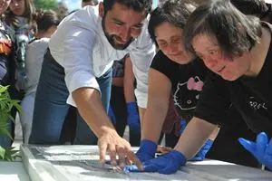 Convinzione di Luca Gnizio, giovane artista originario di Lodi ora residente a Pietrasanta, è che ogni progetto artistico si plasmi e arricchisca grazie alla collaborazione e al convolgimento dei fruitori. È il rapporto fra l'artista e la sua creazione e la gente che ne entra in contatto a realizzarla, in senso compiuto. Di qui la bella idea di chiamare alla partecipazione i ragazzi delle scuole e anche persone diversamente abili che, intervenendo concretamenete sull'opera, hanno contribuito a renderla pienamente sé stessa.