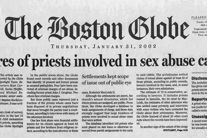 Il 6 gennaio del 2002 un articolo di prima pagina del Globe usò i documenti interni della stessa archidiocesi per mostrare che il cardinale Law e altri erano al corrente degli abusi sessuali perpetrati in serie da Geoghan, e ciò nonostante continuavano a mettere questo sacerdote in contatto con ragazzi. Il team “Spotlight” del Globe fu invaso da un diluvio di quasi 2000 chiamate ed e-mail da parte di persone angosciate. Ben presto divenne chiaro che nel corso degli ultimi trent'anni oltre 90 sacerdoti erano stati coinvolti, si presumeva, in casi di molestie sessuali. Verso la fine di gennaio il Globe vinse la sua causa e riuscì a far aprire il fascicolo Geoghan. A questo punto furono disponibili quasi diecimila documenti. ….