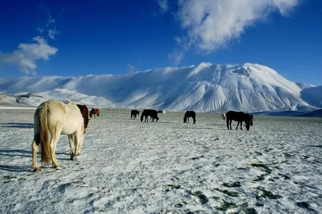 La discesa a valle dei cavalli si è svolta oggi, 20 dicembre, a partire dalle ore 9, quando la mandria ha iniziato la transumanza dall'altipiano di Castelluccio sino alla Valle di Norcia, discendendo di 1.000 metri di quota. L'operazione di transumanza è stata gestita da numerosi amici di Emiliano che, cavalcando i loro cavalli, hanno portato al sicuro gli animali. Lo ha reso noto Raffaele Capponi, agronomo, Coordinatore delle Guide Ambientali Escursionistiche AIGAE dell’Umbria.