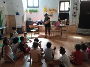 «Si rivolge a bambini dagli 0 ai sei anni. la frequenza al presidio è di 2 volte alla settimana: mercoledì pomeriggio dalle 16 alle 18 il sabato mattina dalle 10 alle 12. abbiamo una media di 20 /25 bambini. una volta al mese creiamo, con le volontarie, un evento (festa dei nonni ,festa del papà, festa della mamma, carnevale…,) e le volontarie organizzano, dopo le letture, anche i laboratori grafico pittorici. Io quando leggo ai bambini mi presento come "Rosjlandia».