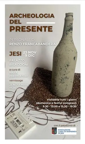 Il performer, pittore e studioso dei linguaggi artistici del contemporaneo, oltre che giornalista e critico teatrale Renzo Francabandera, nella sua mostra Archeologia del presente, scandaglia la storia attraverso cartoline abbandonate, album di fotografie ritrovati fra i rifiuti della carta, brandelli di manifesti, oggetti recuperati dagli sgomberi post-alluvionali, sminuzzati metaforicamente nella loro dimensione passata per restituirla al presente in nuove vesti, come un grande collage. Talvolta a questi rinvenimenti sovrappone la sua pratica grafico-pittorica per creare nuovi spazi dell’immaginazione, ambienti fantastici, storie e vicende puramente immaginate nate dall’assemblaggio di segni.