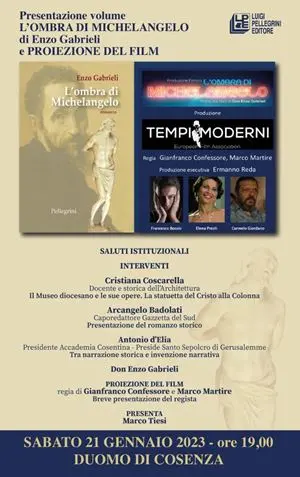 Un trhiller storico avvincente tanto che già prima della presentazione ha dato vita ad un progetto cinematografico della casa di produzione calabrese "Tempi moderni" con la regia di Gianfranco Confessore. È il romanzo L'ombra di Michelangelo, edito da Pellegrini. L'autore, don Enzo Gabrieli, si propone di investigare e promuovere una pagina storica inedita e che riguarda alcune opere d'arte custodite nel Museo diocesano. Una in particolare è attribuita al grande artista Michelangelo Buonarroti sin dal 1700; attribuzione postuma ma supportata da documenti notarili proventi dalla corte del Vicerè di Napoli che ne confermano anche la donazione alla Cattedrale di Cosenza. L'autore ha costruito un racconto che va dal '500 ai nostri giorni per stimolare la fantasia e aprire nuove strade alla ricerca sulla preziosa statuina del Cristo alla Colonna ma con affondi ai tempi delle crociate. Un lavoro di cucitura che ha messo insieme una serie di fatti, eventi e personaggi reali che tiene il lettore in suspence fino alle ultime pagine di cronaca contemporanea.