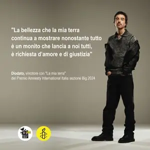 Diodato, con la canzone La mia terra, è il vincitore del Premio Amnesty International Italia 2024 nella sezione Big, assegnato da una giuria composta da giornalisti, conduttori radiofonici e televisivi, intellettuali, rappresentanti di Amnesty International Italia e di Voci per la Libertà. Il brano, composto per il film Palazzina LAF di Michele Riondino e vincitore del David di Donatello per la categoria “miglior canzone originale”, è un omaggio alla città di Taranto: passando dal mito, alle origini e alla sua storia, racconta una città colpita dall'ingiustizia e dal desiderio del suo popolo di rialzarsi.