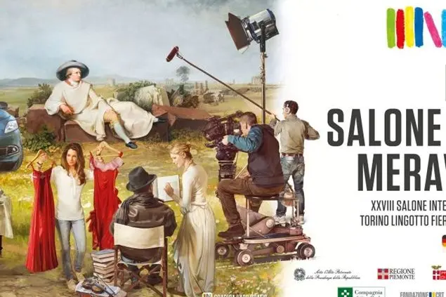 3) L'immagine simbolo è davvero suggestiva: opera dell’agenzia Simonetti Studio di Torino, trasferisce Johann Wolfgang von Goethe, come lo conosciamo dal celebre ritratto nella Campagna Romana realizzato nel 1787 da Johann Heinrich Wilhelm Tischbein, in un set cinematografico, attorniato dai simboli contemporanei dell’eccellenza made in Italy: il cinema, il libro, la musica, la moda, la cucina, lo stile e l’innovazione nell’auto. Il claim è «Italia, Salone delle meraviglie». Un Paese che è esso stesso un’immensa Wunderkammer dello stupore e della bellezza.