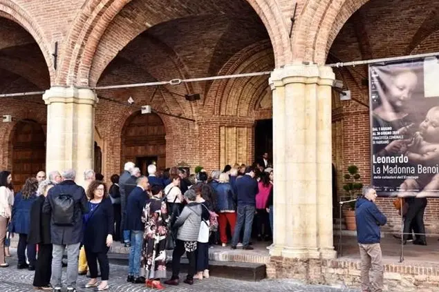 (Foto Ansa: visitatori in coda per vedere la "Madonna Benois" di Leonardo alla Pinacoteca civica di Fabriano)