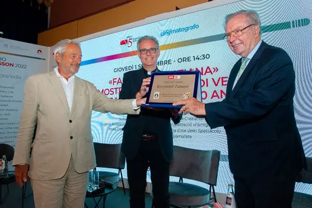 Famiglia Cristiana e la Mostra del cinema di Venezia sono nate entrambe novant’anni fa. Un anniversario che è stato celebrato ieri all’Hotel Excelsior, il luogo che ospitò la prima rassegna del 1932, all’interno dello spazio della Fondazione Ente dello Spettacolo presieduta da don Davide Milani, con il premio speciale alla carriera al grande maestro polacco Krzysztof Zanussi. Il riconoscimento gli è stato consegnato Il presidente della Biennale Roberto Cicutto e dal direttore di Famiglia Cristiana don Stefano Stimamiglio.