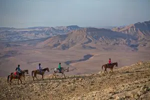 Al culmine del Monte Neghev, a sud della città di Be’er Sheva, la città dove Abramo osò piantare nella sabbia del deserto una vigna e la sua stessa dimora, la carovana rosa attraverserà il Makhtesh Ramon, uno dei più grandi crateri al mondo (lungo 40 km, largo fino a 10 e profondo 500 metri), che somiglia a un cuore allungato e porta il nome di Ilan Ramon, primo astronauta israeliano: morì nel 2013 dentro la navicella Columbia che si disintegrò nello spazio.