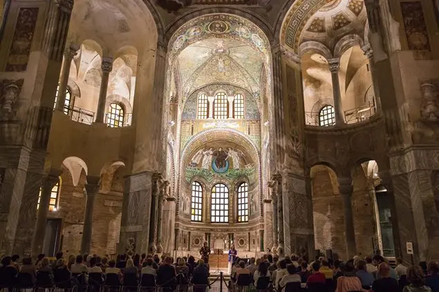 Molti gli appuntamenti con la musica sacra nella basiliche. Il Festival ha commissionato una nuova sacra rappresentazione: Rut, raccolti di speranza è stata composta da Marianna Acito su libretto di Francesca Masi. Le messe in scena a tema sacro contano anche lo splendido ciclo di sette cantate Membra Jesu Nostri di Dietrich Buxtehude, affidato al Coro & Ensemble 1685 del Conservatorio Giuseppe Verdi di Ravenna, con il visual project dell’Accademia di Belle Arti di Ravenna, mentre l’oratorio San Giovanni Battista composto da Alessandro Stradella per l’anno giubilare 1675 (già applaudito al festival Stradella a Viterbo) è eseguito dall’Ensemble Mare Nostrum diretto Das Andrea De Carlo. I 500 anni dalla nascita di Palestrina sono celebrati a San Vitale dai Tallis Scholars, insieme ai novant’anni di Arvo Pärt, e dall’ensemble vocale Odhecaton. Tallis, Odhecaton e Gruppo Vocale Heinrich-Schütz prenderanno parte anche a In templo Domini.