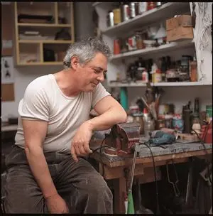 Giancarlo Santelli (nome d’arte di Giovanni Prisciantelli), nato a Santeramo in Colle nel 1944 e morto a Monterotondo nel 2020, ha realizzato maschere per il teatro di Eduardo De Filippo e Roberto De Simone e per il cinema di Ettore Scola. Le sue creazioni sono state indossate in scena, tra i tanti, da Eduardo, Gigi Proietti, Massimo Troisi, Massimo Ranieri. Negli ultimi trent’anni della sua carriera, Santelli si è dedicato a restituire alla scena le maschere del mondo antico, rimodellate con spirito contemporaneo e accuratezza storica, sulla base di sculture, pitture, mosaici e altre testimonianze dell’arte scenica antica.