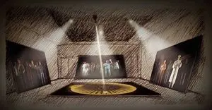 LO STUDIO AZZURRO AI MUSEI VATICANI Dal 28 settembre 2016 l'ambiente sensibile IN PRINCIPIO (E POI) dello Studio Azzurro entrerà a far parte della collezione permanente dei Musei Vaticani. Una sala rinascimentale della sezione di Arte contemporanea è stata appositamente preparata per la sua messa in scena, dai pannelli iconografici dedicati a Robert Fludd alle lastre in polvere di pietra da cui emergono i Portatori di Storie.