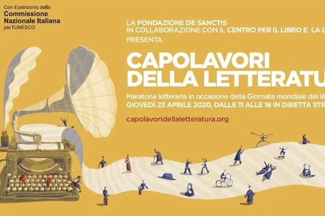 In occasione della Giornata Mondiale del Libro di oggi 23 aprile, la Fondazione De Sanctis, in collaborazione con il Centro per il libro e la lettura, organizza la sua prima maratona letteraria in streaming. Grazie a una piattaforma creata appositamente per l’occasione e alla partecipazione di grandi autori e attori, la Giornata Mondiale del Libro verrà così festeggiata in tutte le case attraverso la piattaforma www.capolavoridellaletteratura.org, sui siti di Ministero dell’Istruzione, Repubblica, Corte dei conti, TIM-Operazione Risorgimento Digitale e ACI.