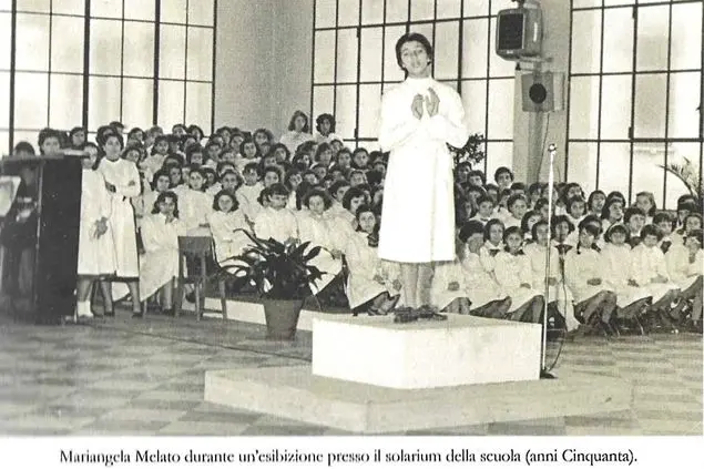 «Tra le materie elencate sulle pagelle, oltre a lingua italiana e geografia, ci sono lavoro, disegno e canto in cui Mariangela ha sempre i voti migliori» si legge in Tutto su Mariangela - biografia di una donna" di Michele Sancisi, edito Bompiani Overlook. «Varie ore settimanali sono dedicate all'osservazione della natura, dall'allevamento degli animali alla coltivazione delle piante. La nuova maestra, Matilde Cortese, è un’educatrice coi fiocchi, nelle sue annotazioni sul registro si percepiscono dolcezza, spessore culturale ed entusiasmo per la propria missione: "Più si vive al Trotter e più spesso ci offre la viva, splendida ricchezza dei suoi mezzi pedagogici. Oggi, libere nel sole, le bimbe hanno 'giocato' a scoprire le 'azioni' che vedevano compiere intorno a sé. Ne è risultata una magnifica lezione di grammatica, respirata con l'odore della prima erba!" La piccola Mariangela annusa forse per la prima volta il piacere di vivere e di stare con gli altri, in una dimensione leggera, aperta, pulita, che le giova molto».