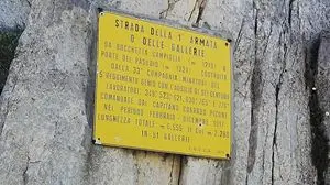Costruita nel 1917 dai soldati italiani impegnati nelle Piccole Dolomiti per difendere il crinale dagli austriaci, la Strada delle gallerie parte dalla Bocchetta di Campiglia (1.216 metri) e arriva a quota 1.928 dove durante il conflitto si era sviluppata una “città” con i baraccamenti dell’esercito e i servizi utili per il fronte; un terzo del percorso si svolge in galleria, mentre il restante tratto è scavato a mezza costa nella roccia.