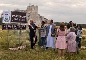 Veniamo alla storia: nell’isola di Porto Buio ogni anno si fa un celebre presepe vivente che attrae molti turisti. Il problema è che non nascono da anni più bambini, e l’unico ragazzino destinato a interpretare il bambinello è troppo grande e grosso per essere credibile. Come risolvere la spinosa situazione? Il neo eletto sindaco (Bisio), un politico esiliato nell’isola dove è nato dopo aver fallito come amministratore al Nord, prende in mano la situazione e pensa di rivolgersi alla comunità magrebina che vive nell’isola e con la quale gli abitanti hanno un rapporto di ostilità e di sospetto. E essa fa parte anche un suo amico d’infanzia, Mario (Gassman), che una volta convertitosi all’Islam ha preso il nome di Bilal. L’altro personaggio cardine della storia è suor Marta (Finocchiaro), che gestisce una pizzeria, ed era anch’essa amica d’infanzia di Mario e del sindaco, anzi era stata lei la causa del loro allontanamento in quanto entrambi erano innamorati di lei. Bilal promette al sindaco che sarà suo figlio, che nascerà proprio a Natale, a fare il Bambinello nel presepe, ma in cambio pretende tutta una serie di concessioni: altera la struttura del presepe, impone che i cattolici facciano il Ramadan, chiede che la Chiesa diventi anche un luogo di culto islamico. Le due comunità pur con qualche incidente e incomprensione cominciano ad amalgamarsi e a imparare a vivere insieme. Fino a quando l’arrivo della figlia del sindaco sconvolge di nuovo le cose.