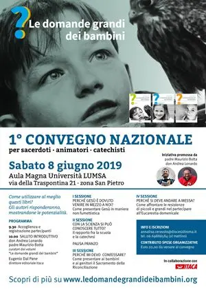 Un convegno che si preannuncia di grande caratura, quello che si terrà sabato 8 giugno dalle ore 9.30 a Roma presso l’Aula Magna dell’Università LUMSA (via della Traspontina 21 – zona San Pietro) dove don Andrea Lonardo e padre Maurizio Botta incontreranno sacerdoti, catechisti, animatori ed educatori per un grande seminario in cui si approfondirà il metodo di utilizzo dei primi tre volumi de Le domande grandi dei bambini (Itaca Edizioni).