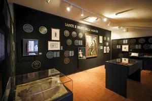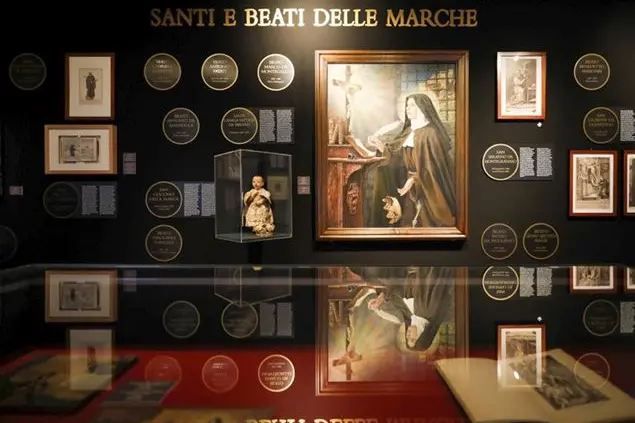 La mostra sarà divisa in 3 sezioni: nella prima vedremo il racconto dei papi (età medievale, età moderna, Risorgimento) attraverso biografie ed elementi che li contraddistinguono come ritratti, medaglie, oggetti legati alla loro committenza. Come nel caso del tabernacolo di El Greco legato alla figura del Papa Sisto V. Nella seconda i santi e i beati (San Marcellino, San Nicola da Tolentino, il Beato Sante, San Giacomo della Marca, Santa Camilla Battista da Varano, San Giuseppe da Copertino, Santa Veronica Giuliani, Santa Maria Goretti) attraverso incisioni, quadri, oggetti di culto e di valore spirituale come le preziose pagine dell’Evangelario di San Marcellino risalente al VI secolo. Nella terza gli itinerari sacri delle Marche: eremi, oratori, santuari, abbazie, rinomate chiese e cattedrali, splendide testimonianze dell’arte romanica e rinascimentale. Questa sezione sarà illustrata anche attraverso mappe, piante e disegni antichi, spesso poco conosciuti o totalmente inediti. Quella che per noi appare la meta di un viaggio era un tempo la tappa di un più complesso itinerario dell’anima, ricerca di luoghi sacri, ma anche di luoghi di riflessione e connessione interiore.