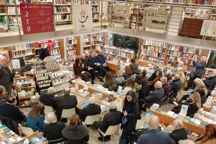Non è scontata una libreria strapiena in una serata piovosa d’inverno. Per parlare di cultura e politica. Per confrontarsi sul potere delle parole, per aprirsi al dialogo. Alla presentazione del libro di monsignor Nunzio Galantino - Nel crocevia delle culture. Parole per pensieri che orientano – nell’ambito delle iniziative della Scuola di Azione civica “Lèp, Libertà è Partecipazione” arrivano in tanti. Restano in piedi e qualcuno fuori dalla libreria San Paolo di via della Conciliazione, a Roma, assetati di ascolto e conoscenza. Il testo, che raccoglie le oltre 300 parole che monsignor Galantino ha spiegato nella sua rubrica settimanale sul Sole 24 ore, offre lo spunto per parlare del loro potere trasformativo. Lo fanno il giornalista Marco Damilano, Vincenzo Boccia, presidente della Legion d’onore Italia e Vaticano e già presidente di Confindustria, lo stesso autore del libro sollecitati dalle domande del giornalista – e animatore della Lèp - Luigi Ferraiuolo.