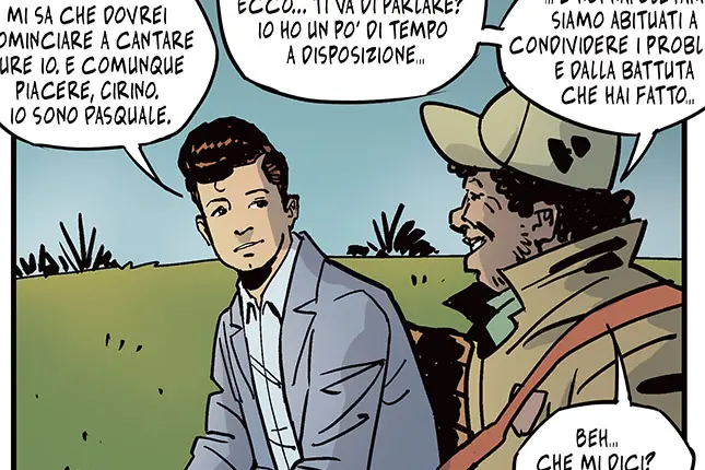 «Lino Banfi per me è un’icona» racconta lo sceneggiatore, origini palermitane ma trapiantato a Milano. «Così come avevo fatto già con un altro idolo della mia infanzia, Bud Spencer nel libro sempre illustrato da Lauciello e pubblicato Renoir, desideravo potergli dedicare un fumetto. In particolare mi aveva colpito, nelle sue interviste, il grande amore che ha sempre provato per la moglie. Rintracciarlo non è stato facile, fino a quando ho scoperto che la figlia Rosanna ha un’orecchietteria a Roma. Ho chiamato il ristorante con un po’ di passaggi, sono arrivato a ottenere un incontro con Lino Banfi a casa sua. È stata una chiacchierata di tre ore e anche in quell’occasione ha esordito parlandomi della moglie, che era scomparsa il 22 febbraio 2023».