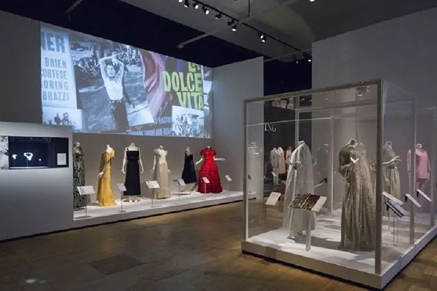 Esposti sono circa 120 abiti e accessori di stilisti come Dolce & Gabbana e Giorgio Armani e altri meno noti come le Sorelle Fontana famose nel Dopoguerra. C’è spazio anche per Audrey Hepburn e la collana di smeraldo indossata da Elizabeth Taylor e fatta da Bulgari, l’unica parola italiana conosciuta dall’attrice americana.
