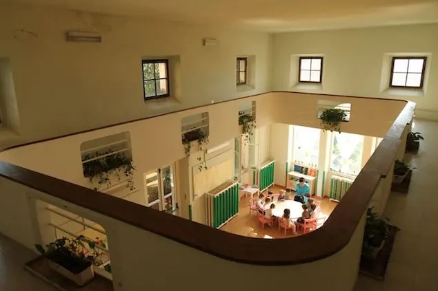 Il tutto in attesa del 31 agosto 2020, 150° anniversario della nascita della pedagogista che ha avuto l’onore di dare il volto all’ultimo taglio del biglietto da mille lire. Oggi la Casa dei bambini Santa Croce è una scuola d’infanzia paritaria con un consiglio d’amministrazione espressione di enti pubblici locali: dell’asilo nato nell’Ottocento a scopo sociale in sostegno alle famiglie bisognose restano le splendide foto in bianco e nero, i cui grembiuli inamidati evocano una disciplina antica e superata. Il resto è un mondo a misura di bambino, tutto luce e colore, ricavato in un ex convento del XIV secolo: seggioline e tavolini di legno, foto di generazioni di bambini alle pareti, ogni sorta di colori e materiali didattici ad hoc, che rendono inconfondibile l’impronta, e nulla che abbia una misura fuori dalla portata delle mani di un piccolo di tre anni. Alla base c’è il concetto montessoriano che la scuola sia una “casa” in cui il bambino possa muoversi senza che il suo istinto a sperimentare per imparare venga frustrato da una serie di proibizioni, come accade in una casa pensata per adulti. Prevale il rosa. La stessa tinta della “torre rosa” simbolo del metodo Montessori nel mondo. «Ma è un caso», racconta Sylvia Dorantes, 66 anni, «un tempo ogni classe aveva un colore diverso, poi, negli anni, il bisogno di conciliare restauri ed economia, ha fatto sì che il rosa prevalesse».