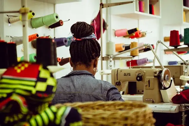 (Foto sopra di Roberta Cappelli: una delle ragazze della comunità Casa Rut che lavorano nella sartoria etnica "New Hope")