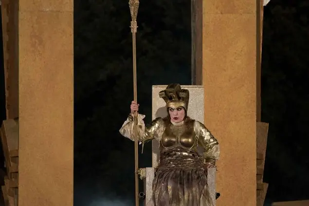 La grande attrice bolognese Piera Degli Esposti torna in scena, dopo alcuni anni, interpretando Atena, dea della giustizia, nel teatro greco di Siracusa, in Coefore/Eumenidi di Eschilo, per la regia di Daniele Salvo, in occasione del centenario dell’Inda, Istituto Nazionale del Dramma Antico. «Il teatro di Siracusa è sempre molto suggestivo - racconta l’attrice - per me è molto emozionante tornare davanti a un pubblico enorme, quasi da concerto, nel ruolo di una dea che non ha un carattere ben definito come Fedra, Medea o Clitennestra. La mia Atena è imperscrutabile e sono contenta di avvalermi delle scenografie e dei costumi di un artista come Arnaldo Pomodoro: ho un elmo molto grande che mi rende maestosa, appaio come una dea sovrana di grande carisma, in un momento in cui purtroppo della dea della giustizia ci sarebbe molto bisogno! Penso a tutte le persone che stanno crollando dalle loro poltrone, perciò sono contenta di interpretare un personaggio che ricordi il ruolo fondamentale della giustizia, è come se recitassi la Costituzione. È un personaggio che sento molto mio, anche perché in passato sono stata Elettra, poi Clitennestra, rispettivamente figlia e moglie di Agamennone, e ora sono Atena. Nell’uccisione di Agamennone per vendetta e nel matricidio di Clitennesta da parte di Oreste, ho interpretato i diversi ruoli femminili, così da avere una visione completa della tragica vicenda.»