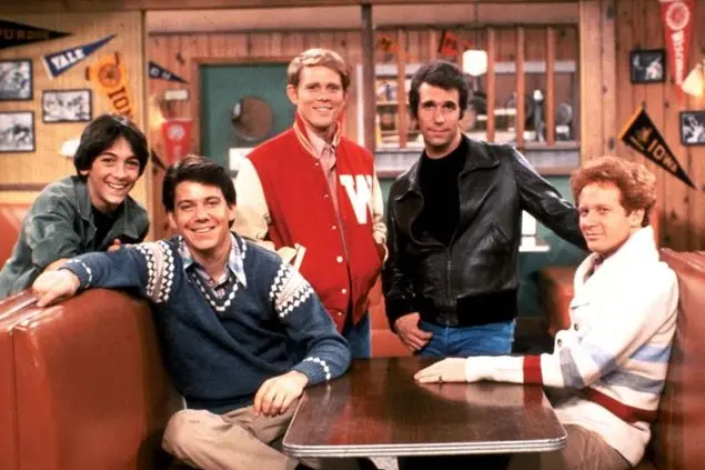 L’ideatore della serie fu il produttore Garry Marshall (quello, per intenderci, di Pretty Woman) che, anche alla luce del successo del film American graffiti, pensò di raccontare le vicende di una famiglia americana tipica degli anni Cinquanta, un’epoca in un certo senso ideale, senza le contraddizioni e i drammi giovanili (come il dilagare della droga) che stavano caratterizzando gli anni Settanta. La famiglia Cunningham incarnava valori cristiani, era rassicurante, e anche il ribelle, Fonzie, di gran lunga il personaggio più amato, era un buono, con i modi da duro ma dal cuore tenero. «A ricordare con affetto e nostalgia la famiglia Cunningham, gli amici di Richie – Ralph, Potsie e soprattutto il leggendario Fonzie – non sono solo gli spettatori che erano adolescenti tra la fine degli anni Settanta e gli anni Ottanta, ma più generazioni. A guardare le puntate di Happy Days prima del Tg delle 20 era tutta la famiglia e, pure dopo la fine dell’undicesima e ultima stagione, sono state rimandate in onda su Italia 1, su Canale 5 e anche diffuse in Dvd. Ora si possono vedere su www.justwatch.com». L’Italia è stato uno dei Paesi nei quali Happy Days ha avuto il successo maggiore, con punte di 13 milioni di spettatori e un gradimento del 75%. C’è un bel po’ di Italia in Happy Days: Fonzie è l’abbreviazione di Arthur Fonzarelli; suo cugino Chachi Arcola (che poi diverrà il fidanzato di Joanie), è interpretato da Scott Baio, la cui famiglia è originaria di Palermo; il proprietario del locale Arnold’s dove si ritrovano Richie e i suoi amici si chiama Al Delvecchio (interpretato da Al Molinaro); lo stesso Garry Marshall di cognome faceva Masciarelli ed era nipote di emigrati abruzzesi. «Credo che il successo di Happy Days fosse dovuto anche alla grande sintonia che c’era sul set tra gli attori», spiega Emilio Targia, «che erano davvero diventati una famiglia e in cui nessuno era geloso dell’altro. E molti di loro hanno poi avuto una brillante carriera senza rimanere intrappolati nei ruoli che avevano nella serie». Su Happy Days uscirono fumetti, giocattoli e ogni tipo di gadget. «Molti di questi sono stati raccolti da Giuseppe Ganelli nella sua casa di Codogno. Lui di mestiere è medico radiologo, ma la sua passione lo ha portato ad accumulare centinaia di oggetti (1.439 per la precisione) e a fondare l’Happy Days International Fans Club. La sua collezione su Happy Days dal 2018 è nel Guinness World Records. Tra gli oggetti che si possono ammirare, e che prossimamente saranno esposti in una mostra itinerante, ci sono la tuta da meccanico di Fonzie, uno dei flipper di scena, la divisa da softball di Erin Moran con il suo autografo, il cappellino da baseball che gli ha donato direttamente Henry Winkler, giochi da tavola, action figures...». Scrive Henry Winkler nella prefazione: «Happy days è stata una delle esperienze più importanti di tutta la mia vita, al di fuori della mia famiglia. Anche quella è stata una famiglia, una squadra che ha lavorato duramente insieme, ha giocato insieme, è cresciuta insieme.... Io e Fonzie siamo molto diversi. Non sono mai stato un figo. Non ho mai avuto la sua disinvoltura con le ragazze, non sono mai riuscito a far partire il juke box con un colpo della mano...». Pochi elementi, il giubbotto di pelle alla James Dean, il pettine sempre in tasca, il gesto con i pollici “Ehi!”: e il suo personaggio è diventato un’icona che resiste al passare del tempo.