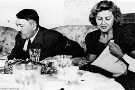 In alto: (Hitler ed Eva Braun nella Tana del lupo)