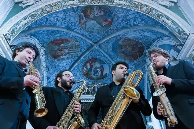 I nostri borghi sono pieni di capolavori artistici quasi sempre sconosciuti ai più. Per richiamare su di essi l'attenzione del pubblico lo scrittore e promotore culturale Alessandro Bottelli ha ideato “I colori dell’aria”, un progetto concertistico per valorizzare, grazie a brani strumentali creati ad hoc da compositori professionisti, il patrimonio artistico-culturale del territorio bergamasco. In tal modo si intende dare al pubblico la possibilità di apprezzare sotto una luce completamente diversa – quella del linguaggio dei suoni – opere di notevole fattura e pregio iconografico, spesso di autori anonimi e, nella maggior parte dei casi, relegate ai margini dei grandi flussi turistici. Giunto al suo quarto appuntamento – dopo aver fatto tappa a Tavernola Bergamasca, Santa Croce di San Pellegrino Terme e nella chiesa di San Nicola ai Celestini in Bergamo –, “I colori dell’aria” si trasferisce dunque appena fuori Bergamo approdando nell’antica e appartata Chiesa di S. Bernardino in Lallio (Bg), autentico scrigno di bellezza, storia e memoria. Qui,domenica 23 aprile alle ore 16.00 con replica alle ore 19 si esibiranno i giovani componenti del Vagues Saxophone Quartet (Andrea Mocci sax soprano, Francesco Ronzio sax contralto, Mattia Quirico sax tenore, Salvatore Castellano sax baritono), una formazione già coronata da numerosi riconoscimenti (premio speciale del Concorso Internazionale “Luigi Nono” nel 2016, primo premio assoluto al Concorso Internazionale per concertisti “Cosima Wagner” di Bellagio e al Concorso Internazionale per solisti e gruppi cameristici “C. M. Giulini” di Bolzano nel 2022), da presenze a rassegne e festival di rilievo (Milano Musica, Società del Quartetto e Festival 5 Giornate di Milano) e dalla pubblicazione del primo disco per l’etichetta Da Vinci. Ingresso con offerta libera. Prenotazione obbligatoria (posti limitati).