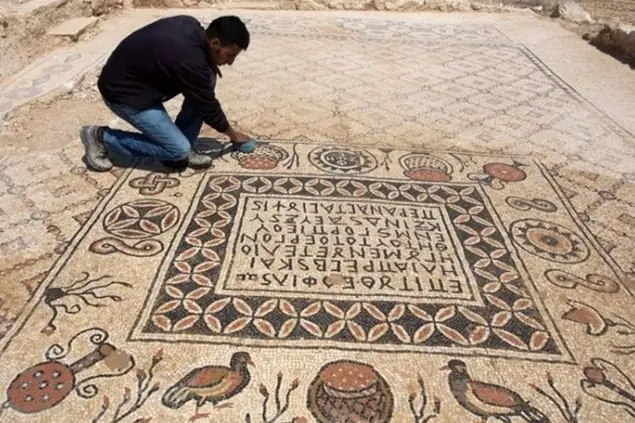 Tra la città di Be’er Sheva ed Eilat, nei pressi del villaggio beduino di Hura, alcuni tecnici, che stavano disegnando il tracciato di una nuova strada, si sono trovati sotto i piedi un mosaico monumentale (12 m x 8,5 m) dell’epoca bizantina. Mille e cinquecento anni fa era il pavimento di una chiesa all’interno di un complesso monasteriale, che comprendeva edifici residenziali, magazzini e una cisterna per l’acqua. Il mosaico è di una bellezza travolgente. Ripuliti dagli archeologi, sono apparsi i colori originali delle tessere in tutta la loro intensità. Secondo l’archeologo Daniel Verga, le tessere musive furono sottoposte dai maestri bizantini a un trattamento che ha reso particolarmente vibranti e resistenti nel tempo i colori delle pietre adoperate: rossi, verdi, gialli e blu. I temi iconografici sono quelli tradizionali: motivi floreali e geometrici, immagini di uccelli e di fiori, scritte in lingua greca. Ma con una eccezione: sono disegnate anche delle croci che non potevano invece essere rappresentate in un mosaico basilicale, perché non fossero calpestate dai fedeli.