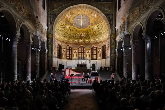 La Basilica di Sant’Apollinare in Classe accoglie, oltre alla Creazione con Accademia Bizantina, la Messa per Sant’Apollinare con la Cappella Marciana diretta da Marco Gemmani, mentre San Vitale ospita i concerti del Marian Consort dal Regno Unito e dell’Irini Ensemble dalla Francia, quest’ultimo con un programma dedicato al (fallito) tentativo di riunire le chiese d’Oriente e Occidente a fine ‘400. A San Giovanni Evangelista debutta Dilexi composta da Danilo Comitini e dedicata all’imperatrice romana Galla Placidia; nella stessa basilica anche l’oratorio di Porpora Il trionfo della Divina Giustizia ne’ tormenti e morte di Gesù Cristo, con l’Ensemble Dolce Concento guidato da Nicola Valentini. La rassegna di liturgie domenicali In templo domini include formazioni italiane e straniere già impegnate nei concerti serali.