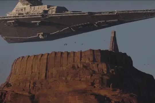 Immaginiamo la situazione: tu, spettatore, fan di vecchia data, ti trovi di fronte all’ambiente desertico della luna Jedha, un luogo costellato di rovine antiche e misteriose. La superficie è sorvolata da un gigantesco incrociatore stellare; è un po’ come ritrovarsi a casa, una scena familiare per te che Guerre Stellari lo conosci da poco meno di quei quasi-quarant’anni passati dall’uscita di A New Hope. Ma c’è qualcosa di diverso. Un nugolo di navette si muove su e giù dal vascello più grande. L’Impero sta saccheggiando la “Città Sacra”, il luogo, si capisce, più importante e mistico del pianeta, come un volgare tombarolo. Nessuno riesce a fare niente per salvarla.