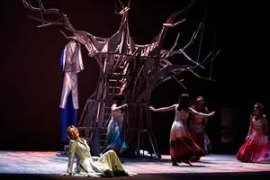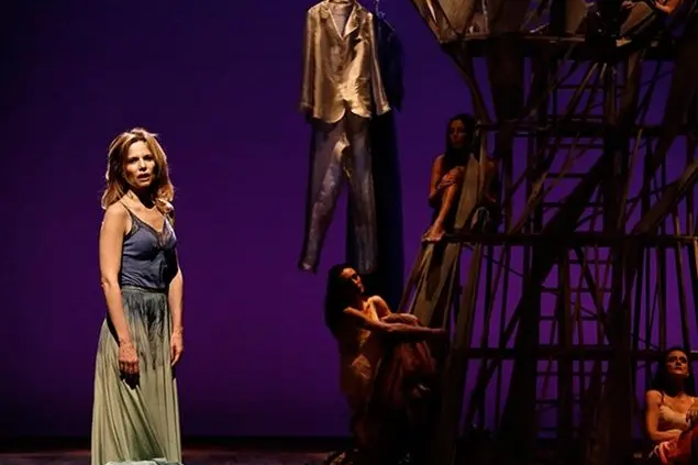 Come regista, la musica, che fa parte della mia formazione artistica, è divenuta parte integrante del racconto, così anche per la parte dell’ “uomo seme” ho scelto un percussionista, che conosco da tempo, Rodolfo Rossi: interpreta un maniscalco, facendo azioni che riproducono le suggestioni ritmiche del lavoro che svolge. Inoltre, la scenografia propone un unico elemento centrale, un grande albero, una scultura scenica, cava e animata da noi donne che vi dormiamo sopra e dentro e muoviamo i rami. L’albero diviene così l’anima del villaggio e indica come, grazie all’energia creativa dello spirito femminile, venga ristabilito il ciclo naturale, interrotto dalla guerra.»