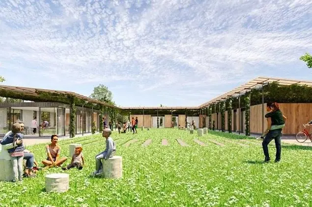 L’area della piscina sarà mantenuta tale favorendo l’aggregazione della comunità locale e dei giovani durante il periodo estivo dei campi residenziali “Scegli da che parte stare”, mentre il vecchio parcheggio verrà trasformato in un orto urbano, utile per le attività di formazione alberghiera.L’intera struttura è concepita per sostenere e ampliare l’educazione dei cittadini, attraverso percorsi di conoscenza e formazione per giovani e adulti, la ristorazione che valorizzi il legame con le produzioni agricole del territorio come potenziamento della vocazione originaria del bene, e l’accoglienza, come ospitalità per famiglie in temporaneo stato di bisogno e come percorsi di riqualificazione professionale e reinserimento nella società.