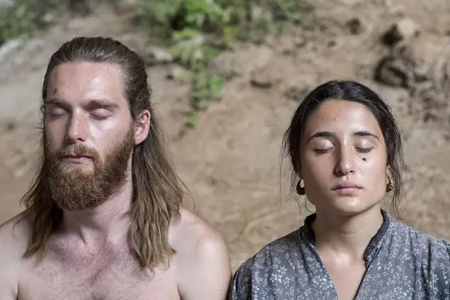 La protagonista della storia è Lucia (Marianna Fontana, una delle due gemelle di “Indivisibili”), che a vent’anni si ostina a voler portare a pascolare le capre anziché sposarsi con il brutto vedovo che le hanno imposto i fratelli. In lei l’ansia di libertà è più forte di tutto e trova appagamento quando entra in contatto con questa comunità di stranieri, uomini, donne, bambini (“Di chi sono”?, chiede lei”, “Di tutti”, risponde una di loro) che hanno occupato una parte dell’isola e passano le giornate a prendere nudi il sole, mentre di notte, sempre come mamma li ha fatti, si lanciano in danze sensuali che avrebbero come fine quello di elevare il loro spirito. A guidarli è un pittore, Seybu, un guru che ha eretto in una grotta il suo tempio e che sostiene che solo l’arte salverà il mondo.