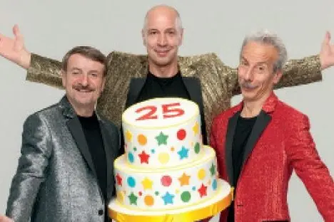 Ok, abbiamo capito, bisogna stare al gioco. Aldo riprende: «Lo stesso vale per la mia presenza qui. Io avrei dovuto fare l’operaio alla Sip per tutta la vita. E invece…». E invece entra Giovanni. Aldo lo guarda e poi lo fulmina: «Io comunque ho sofferto prima di arrivare qui. Lui invece non ha mai lavorato in vita sua». Giovanni non replica. Poi arriva anche Giacomo con un altro foglio con le date del The best of Aldo, Giovanni e Giacomo, lo spettacolo con cui da marzo 2016 il trio festeggerà i 25 anni di carriera, riproponendo i personaggi e gli sketch più divertenti. Giovanni: «Questo spettacolo che mette l’accento sui nostri 25 anni insieme è particolare anche perché noi per il pubblico non abbiamo età, forse perché molti nostri personaggi richiamano i cartoni animati. Pdor figlio di Kmer è sempre lui, anche se adesso ho i capelli bianchi». Giacomo: «Sarà una festa in cui molti avranno modo di vedere per la prima volta personaggi che finora hanno potuto apprezzare solo su Internet, perché quando li abbiamo fatti a teatro o in Tv erano troppo giovani».