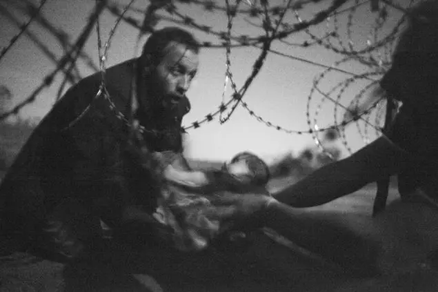 Era doveroso che il World Press Photo premiasse come foto più "bella" dell'anno uno scatto che narra l'epopea dei migranti. Eppure l'immagine ci commuove, ci tocca, se solo abbiamo voglia di osservarla davvero. Così la descrive l'autore, l'ungherese Warren Richardson. «Quella notte, dopo cinque giorni in un campo profughi ho visto un gruppo di circa 200 persone che si muoveva nascondendosi tra gli alberi, lungo la barriera del filo spinato. Mandavano le donne e i bambini e le persone anziane davanti. Abbiamo giocato tutta la notte al gatto e al topo», ha raccontato il fotografo. «Erano circa le tre del mattino quando ho scattato la foto e non potei utilizzare il flash perché la polizia poteva vedere quella gente. Scattai al chiarore della luna».