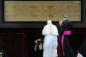 Questo è il mistero del Sabato Santo! Proprio di là, dal buio della morte del Figlio di Dio, è spuntata la luce di una speranza nuova: la luce della Risurrezione. Ed ecco, mi sembra che guardando questo sacro Telo con gli occhi della fede si percepisca qualcosa di questa luce. In effetti, la Sindone è stata immersa in quel buio profondo, ma è al tempo stesso luminosa; e io penso che se migliaia e migliaia di persone vengono a venerarla – senza contare quanti la contemplano mediante le immagini – è perché in essa non vedono solo il buio, ma anche la luce; non tanto la sconfitta della vita e dell’amore, ma piuttosto la vittoria, la vittoria della vita sulla morte, dell’amore sull’odio; vedono sì la morte di Gesù, ma intravedono la sua Risurrezione; in seno alla morte pulsa ora la vita, in quanto vi inabita l’amore.