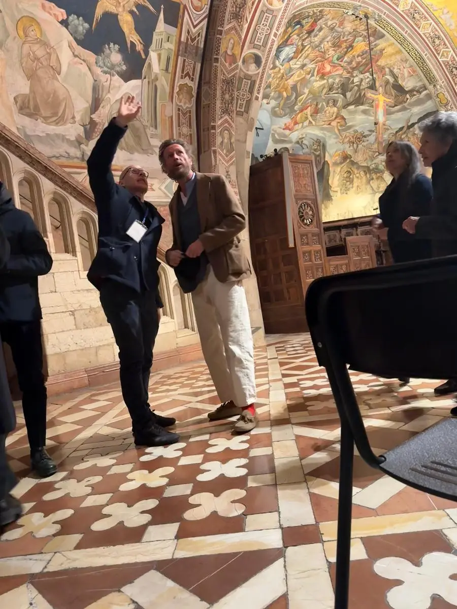 «Speriamo che san Francesco ci protegga e porti un po’ di pace in questo mondo pazzo». Lorenzo Jovanotti rende omaggio alle spoglie mortali di San Francesco nel giorno in cui si chiude il mese dell’ostensione delle sue ossa voluto per celebrare gli 800 anni dalla morte. Con moglie, figlia e suoceri osserva e prega. Fra Giulio Cesareo, direttore dell’Ufficio comunicazioni del Sacro Convento, spiega gli affreschi della Basilica inferiore.
