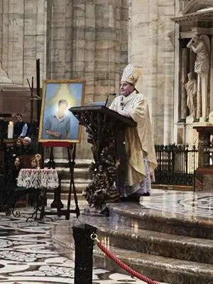 Qualche anno fa in questa città, ha continuato Delpini, «un ragazzo ha vissuto la sua adolescenza come un tempo per impegnare le sue capacità, le sue risorse, il suo tempo per una voglia di fare il bene, per un gusto per i pensieri alti, per un interesse per il mistero che lo segnato fino alla morte. Dell’adolescenza si possono dire molte cose. Si deve però anche dire che l’adolescenza è un tempo adatto per diventare santi».