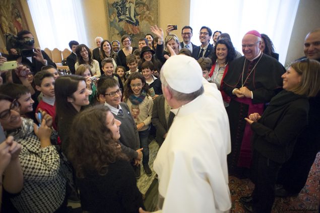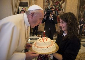 Una torta in dono e un corale “Auguri, papa Francesco!”. Così i ragazzi dell’Azione Cattolica, ricevuti in Vaticano per il tradizionale scambio di auguri natalizi, hanno festeggiato il compleanno del Pontefice che li ha accolti con grande allegria e poi ha spento la candelina