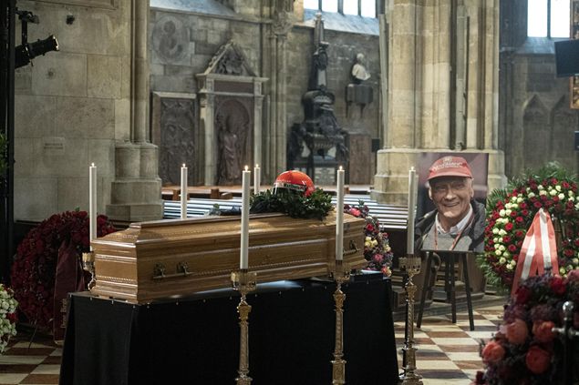 29/05/2019A Vienna, nella cattedrale di Santo Stefano, si è svolto il funerale del pilota, scomparso il 20 maggio all'età di 70 anni. Migliaia di austriaci hanno sfidato la pioggia battente per rendergli omaggio.