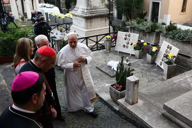 È la prima volta di papa Leone al Cimitero del Verano - uno dei più grandi della città di Roma con i suoi 83 ettari di estensione e la cinta muraria che gli corre attorno - in occasione del 2 novembre, giorno in cui la Chiesa ricorda tutti i fedeli defunti. Prevost prosegue la tradizione inaugurata dal suo predecessore di visitare un cimitero cittadino durante questo giorno. Anche il colore viola dei paramenti indossati dal Pontefice e dagli altri concelebranti, tra cui il cardinale Vicario di Roma, Baldassare Reina, richiama il significato della ricorrenza odierna.