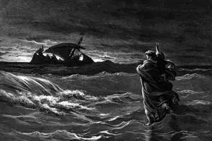 La scena si svolge – se stiamo all’originale greco del Vangelo – «alla quarta veglia» della notte, cioè nell’ultima delle quattro fasi in cui essa era divisa, ossia fra le tre e le sei. Abbiamo, quindi, ancora il segno della tenebra, che è nella Bibbia un simbolo negativo. Analogo è il valore del “mare” che, come è noto, nella Sacra Scrittura incarna il caos, il nulla, il male, tant’è vero che il Giovanni dell’Apocalisse, quando s’affaccerà sulla nuova creazione, scoprirà che «il mare non c’era più» (21,1). Similmente il vento tempestoso è emblema di terrore e di distruzione. Tutta la scena è, quindi, all’insegna della negatività.