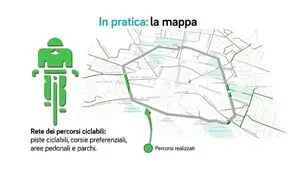 La tangenziale ciclabile, che sfrutta per buona parte la banchina alberata che divide i due sensi dell’anello dei viali di circonvallazione, s’interseca infatti con una rete di strade e stradine che collegano il centro alla periferia, creando uno spazio riservato a chi preferisce spostarsi in bicicletta.