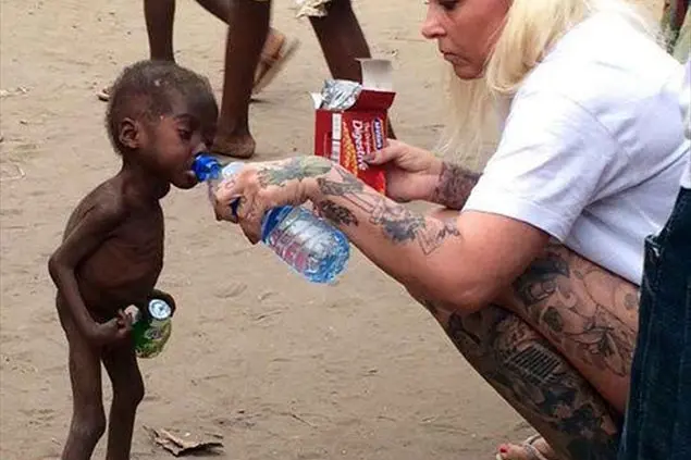 In particolare, la sua foto è sul profilo di Anja Ringgren Loven, 31 anni, volontaria danese dell'African Children’s Aid Education and Development Foundation, che l'ha trovato che girovagava scalzo, nudo e affamato. Da otto mesi vagava da solo nutrendosi di avanzi e spazzatura. L’immagine di quell’esserino magrissimo, che beve dalla bottiglietta d'acqua della volontaria ha intenerito tutti.