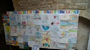Ci sono disegni di bimbi che vivono la guerra tutti i giorni e che non conoscono altro che morte e distruzione. Ad esempio, un bambino del Camerun settentrionale ha creato una piccola opera d’arte che raffigura un uomo rannicchiato nella sua piccola capanna che sgrana un rosario tra le mani mentre un elicottero bombarda il suo villaggio che va a fuoco. Toccanti le immagini provenienti dal Bangladesh che riproducono plotoni di esecuzione, case bruciate, uomini uccisi o impiccati agli alberi. Ma nelle rappresentazioni grafiche dei tanti “artisti in erba” c’è anche un anelito di speranza. Domina la variegata simbologia della pace da salvaguardare, da difendere, da rinsaldare. Le scuole elementari e materne italiane che hanno aderito al progetto sono riuscite a dare una testimonianza forte.
