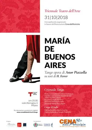Milano come Buenos Aires. Le grandi periferie delle metropoli con il loro carico di emarginazione e solitudine si assomigliano. L'opera di Piazzolla ha molti punti in comune con la Cena dell'amicizia: María de Buenos Aires è stata rappresentata per la prima volta al Teastro Colón, nella capitale argentina, a maggio del 1968 (in coincidenza con le origini dell'associazione) e racconta, pur con un linguaggio poetico e in un'ambientazione surreale, la vicenda di una ragazza che cade nella prostituzione, una storia di sofferenza e di emarginazione in un sobborgo di Buenos Aires. I biglietti si possono acquistare online, attraverso il sito www.cenadellamicizia.it (dove si trovano tutte le informazioni).