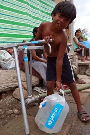 Nella città di Tacloban, la più colpita, ha riparato il principale sistema idrico che ora garantisce l’acqua a tutta la zona.